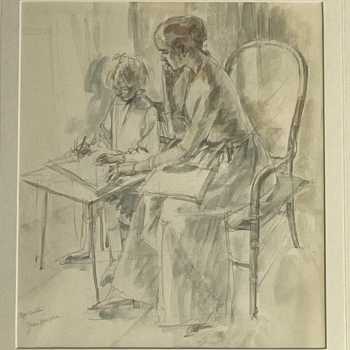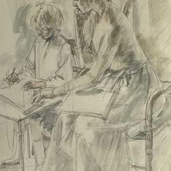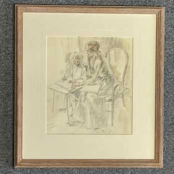 Jean Harper RWS (1921 - 2005) Step Sisters Watercolour Signed and Titled Frame: 16” x 14” Image: 10” x 8” Provenance: Original Exhibition label Sarah Colegrave Fine Art Jean Harper was born in Demerara, British West Indies and studied at the Royal College of Art and British School in Rome. She was a regular exhibitor at the Royal Academy and Royal Watercolour Society and was elected a member of the Royal Watercolour Society and the Royal Society of Painters-Etchers and Engravers. She illustrated several children’s books and is represented in the collection of the Harris Museum and Art Gallery, Preston and Victoria & Albert Museum, London.